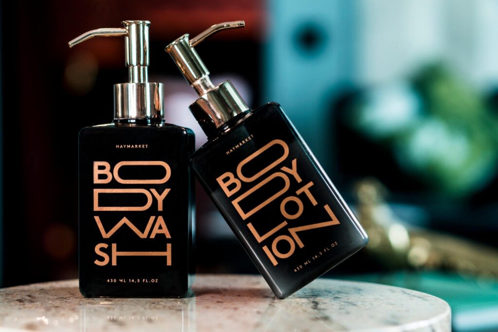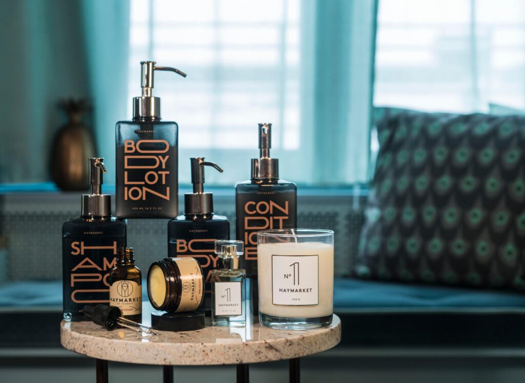 För att fånga känslan av Haymarkets lyx från 1920-talet designade vi en unik fyrkantig flaska i gammaldags design. Våra parfymörer skräddarsydde en signaturdoft som perfekt passade hotellets varumärke och atmosfär. En doft som genomsyrar alla Haymarkets produkter: schampo, balsam, handtvål, bodylotion, duschgel, doftljus och parfym.